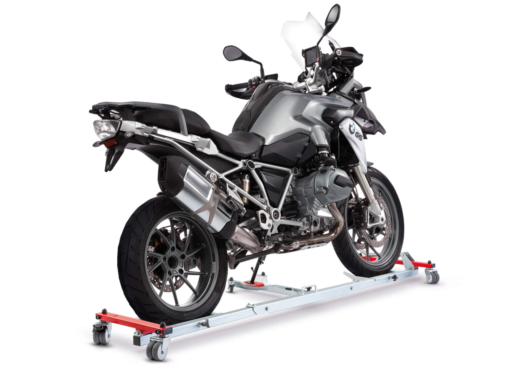 More details FAQ Find a dealerThe U-Turn Motor Mover L motorcycle dolly is adjustable without tools and is therefore easy to adjust to the size of your motorcycle. No need to ride your motorcycle onto the dolly itself, simply place the U-Turn Motor Mover L in the right position and lift up your motorcycle. Because of the light weight and durable materials, the U-Turn Motor Mover motorcycle dolly is easily foldable for storage. The high quality swivel wheels make the U-Turn Motor Mover motorcycle dolly easy to move and therefore perfect to use in narrow spaces (e.g. a small garage).